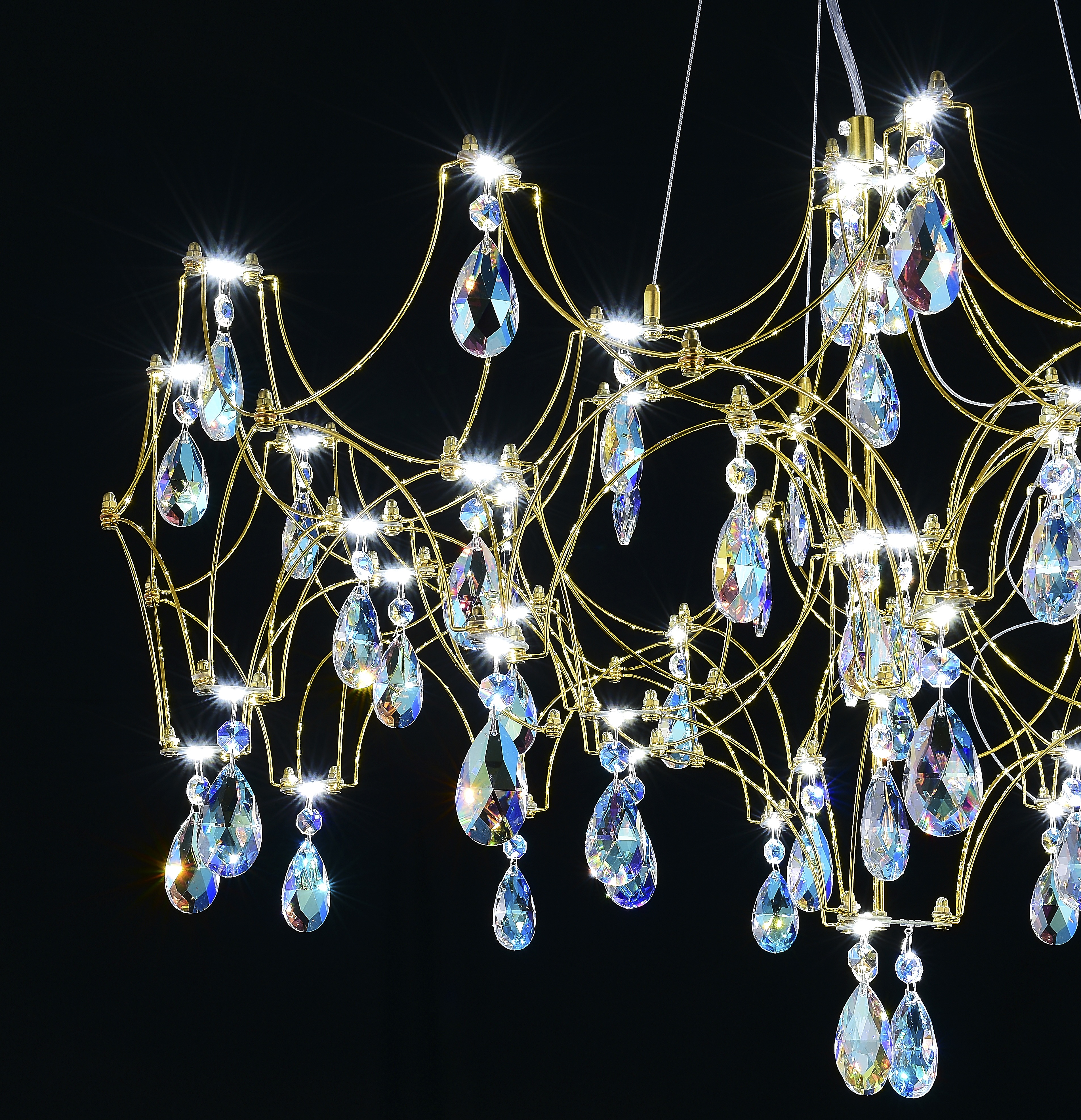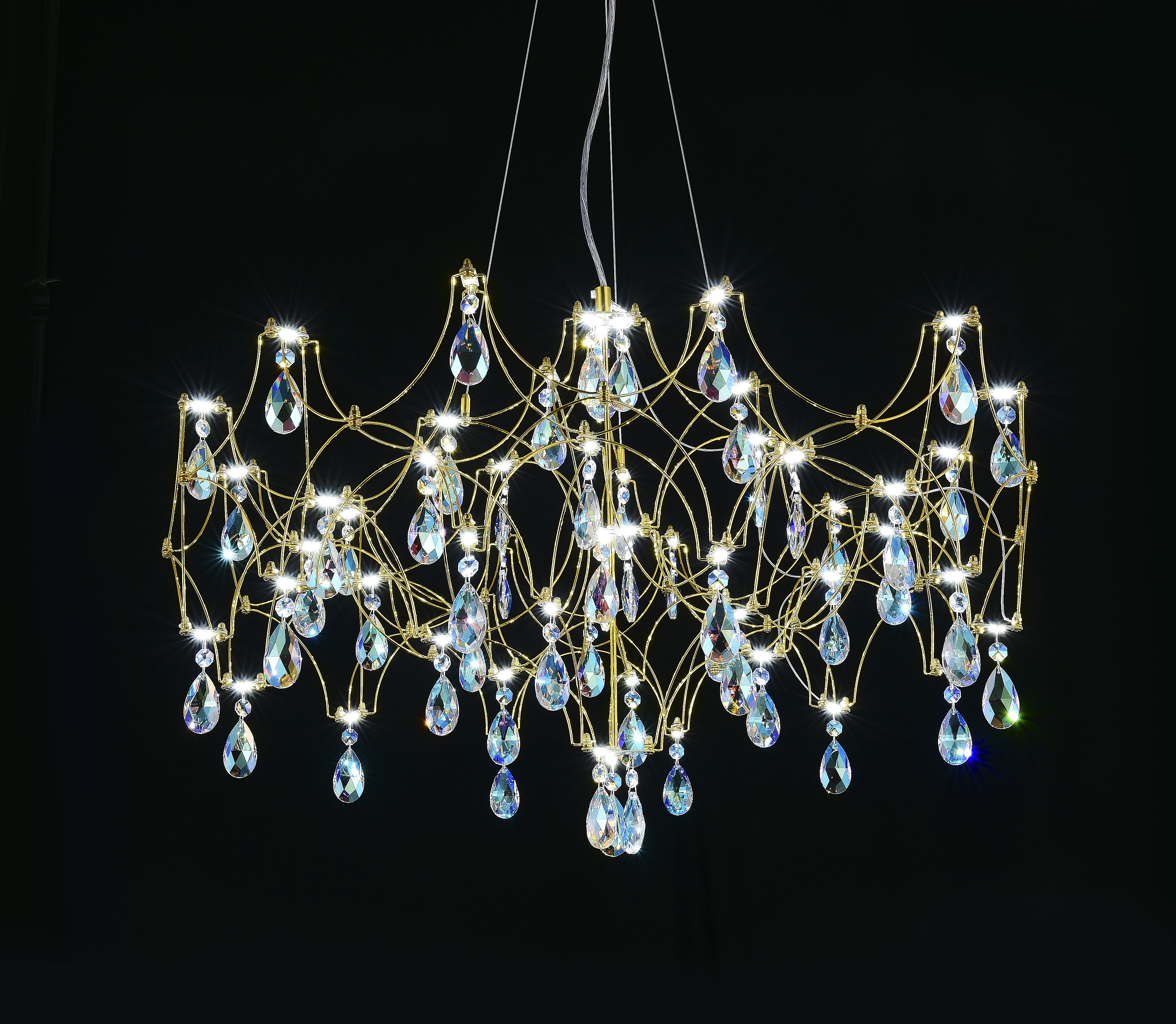 Подвесная люстра светодиодная с пультом и хрустальными подвесками K9 MyFar Ileria MR2652-57P-50СD