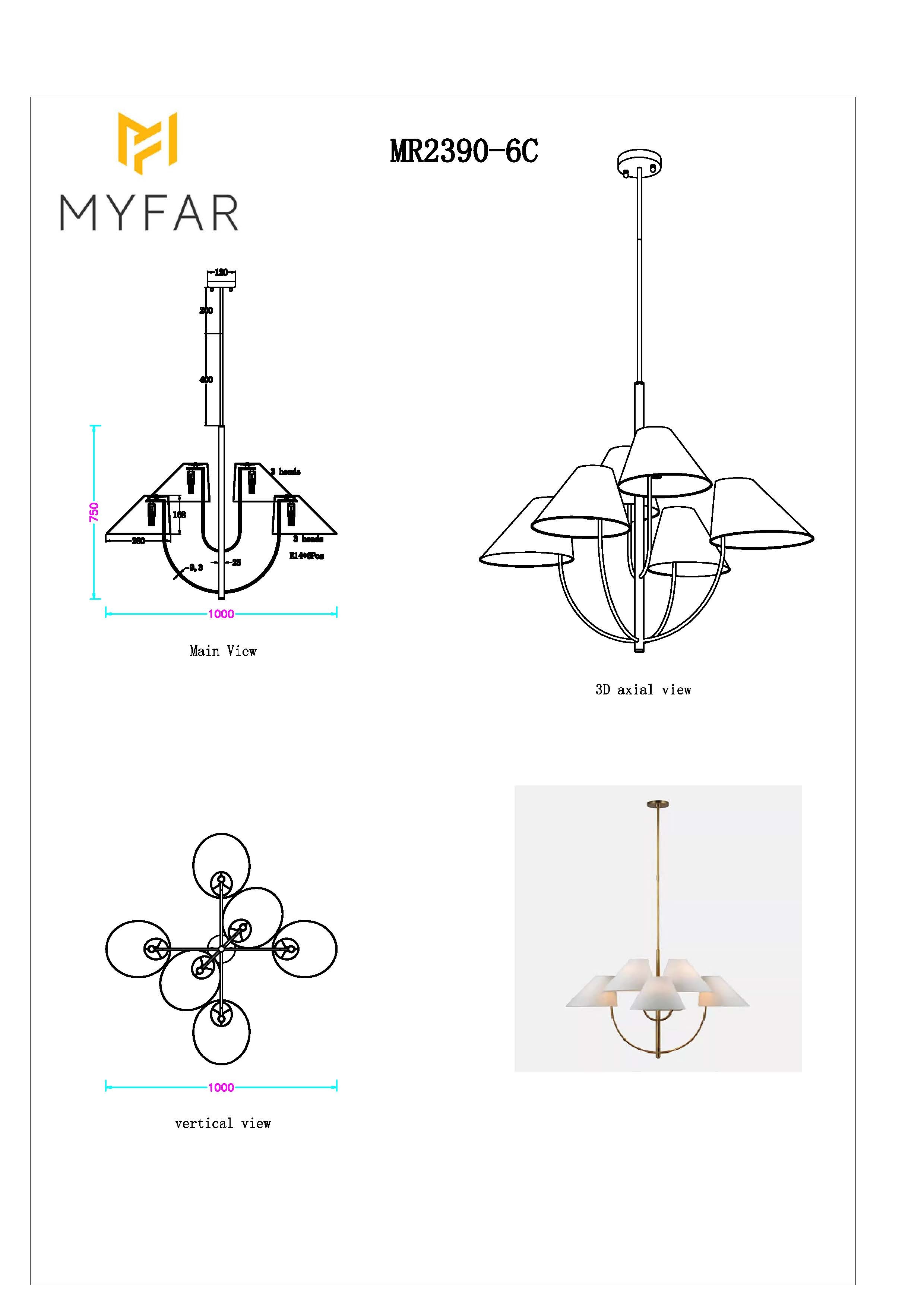 Потолочная люстра на штанге MyFar Lukas MR2390-6C